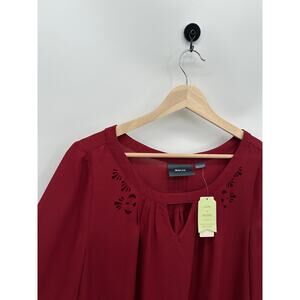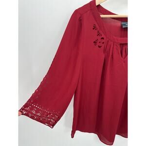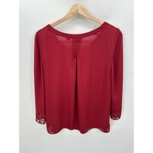 Maeve Blouse Women 8 Red Cut Out 3/4 Sleeve Sheer Lightweight Romantic NWT