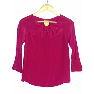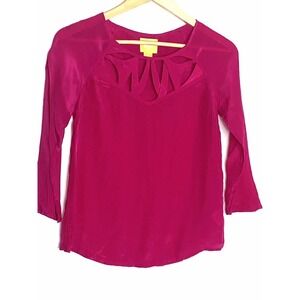 Maeve Blouse Women Size 0 Anthropologie Fuscia Color Front Cutout *