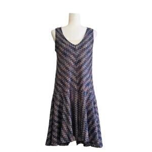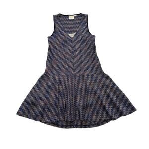 Maeve Blue Purple Chevron Knit Drop Wasit Sleeveless Slip Lined Dress Size XS