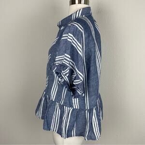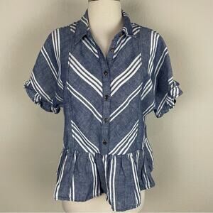 Maeve Blue White Stripe Linen Cotton Blend Top Small