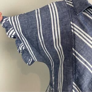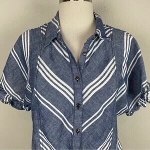 Maeve Blue White Stripe Linen Cotton Blend Short Sleeve Top Small