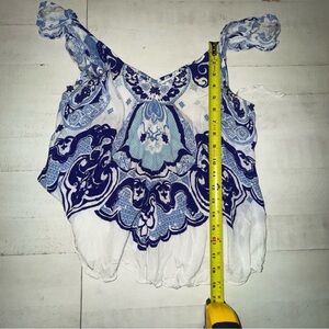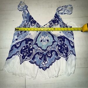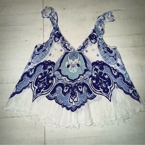 Stylish tank top with intricate blue and white design. Ideal for casual wear.