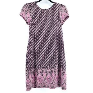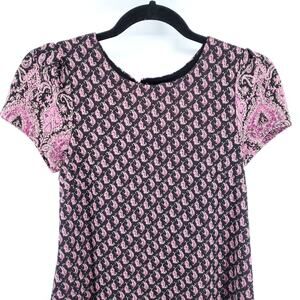 Maeve Boho VTG inspired Tapestry Paisley Geometric Metallic Shift Dress Lined XS