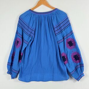 Maeve Bright Blue Native Cross Stitch Boho Peasant Western Shirt Top Womens XS