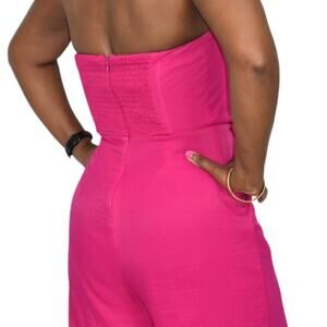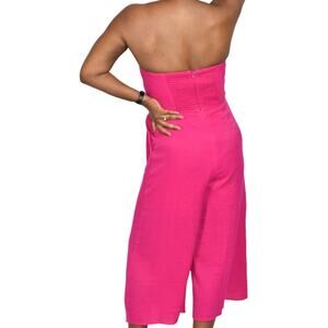 Maeve Brin Tie Front Jumpsuit Pink Cropped Strapless Wide Leg Boning Anthro 4