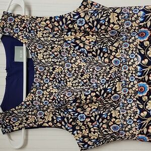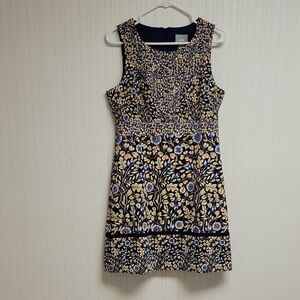Maeve Brown and Blue Floral Sheath Midi Dress Womens Sz 8