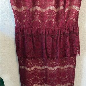Maeve Burgundy Lace peplum Dress with nude liner Small