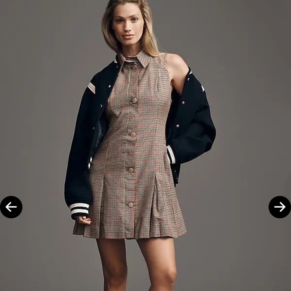 This sleeveless mini dress features a button-up front, A-line silhouette, and is crafted from a blend of polyester, viscose, and elastane with a polyester lining. Never worn, NWT.