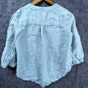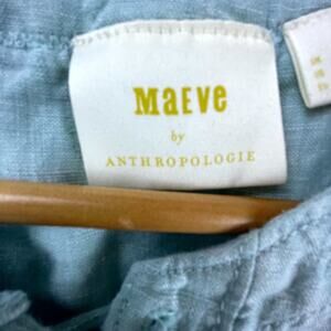 Maeve By Anthropologie Blouse Top Womens 4 Blue Linen Roll Tab Sleeve Lace Up