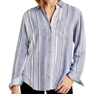 Maeve By Anthropologie Blue & White Striped Button-Up Shirt Size Small