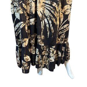 This Maeve By Anthropologie maxi dress combines elegance with comfort, featuring a black and beige floral design. Crafted from a cotton blend, it offers breathable wear with ruffled sleeves and a tiered hem for added style. Designed in a versatile silhouette, it’s suitable for various professional or casual settings.