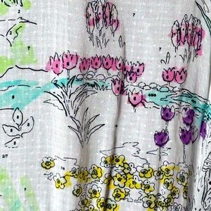 By Numbers" Watercolor Rosa Blouse. A sartorial representation of "coloring by numbers," this elasticized blouse depicts a beautiful, riverbank scene.