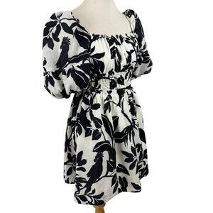 Maeve By Anthropologie Dress Women's Small Puff Sleeve Mini Back Bow Bird Print