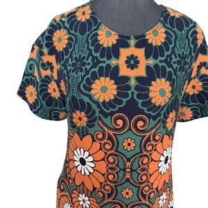 Maeve By Anthropologie Floral Print Tunic Dress SP Multicolor Orange/Green Short