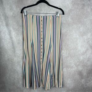 Maeve By Anthropologie Freya Striped Button Front Satin Midi Skirt In Multi US 4