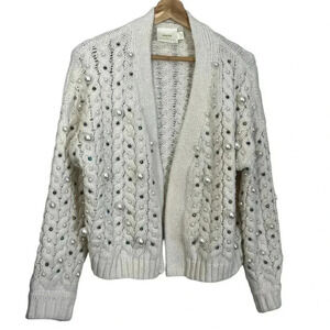 Maeve By Anthropologie Ivory Kimono in Things Embellished Party Pearl Cardigan