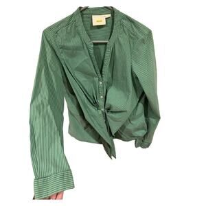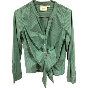 Maeve By Anthropologie Katherine Button Down Top Front Tie Green Striped Size 10