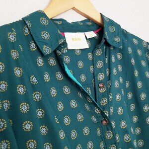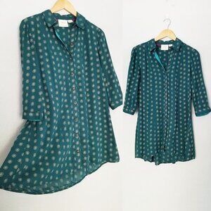 Maeve By Anthropologie Monika Button down Tunic Shirt Top XS Green Longline $128