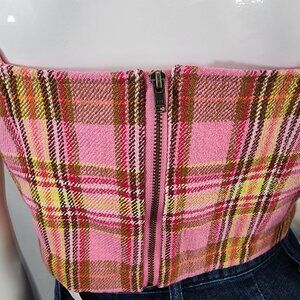 Maeve By Anthropologie Pink Combo Plaid Crop Top Size 2