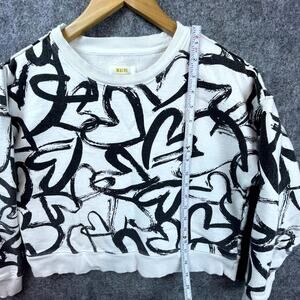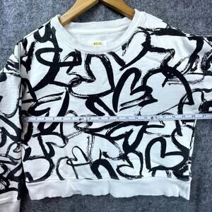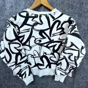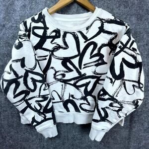 Maeve By Anthropologie Sweatshirt Womens XS White Black Heart Print Boxy