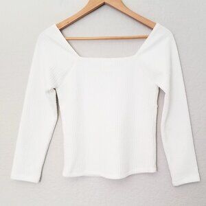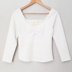 Maeve By Anthropologie Textured Sweetheart Knit Top Ivory White Size XS $78