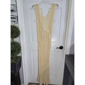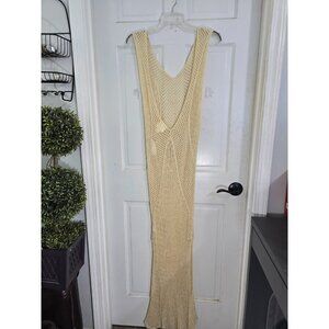 Maeve By Anthropologie Women's Beige Open Knit Maxi Dress Beach Coverup Size NWT