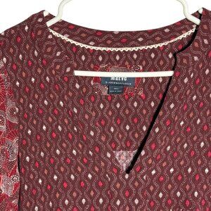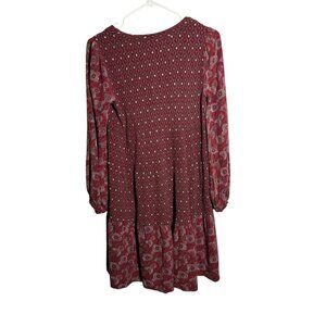 Maeve By Anthropologie burgundy Boho Print Long Sleeve Dress V-Neck Small