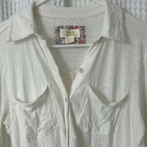 Maeve By Anthropologie Button Down White Pocket Cotton Shirt Women's Size Small