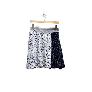 Maeve Carrizo Patterned Silk Mini Skirt White Blue