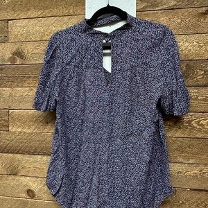 Maeve Choker Neck Blouse – Blue Motif – Size Large