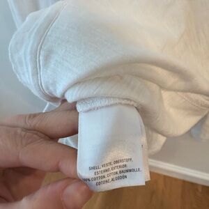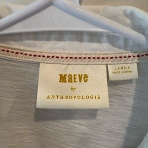 This stylish top from Anthropologie features a crisp white color and a notched collar, complemented by a chic tie front design. The button-down shirt offers a versatile look, perfect for both professional and casual settings.