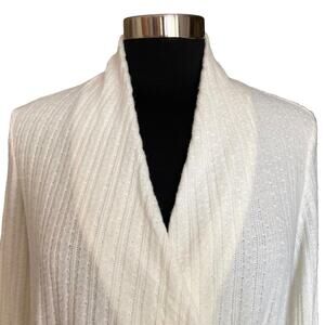 Maeve Cream Rafaela Hacci Surplice Sweater Size Small Faux Wrap Front. Very soft feel. Perfect for layering. 47% viscose, 35% polyester, 18% nylon.