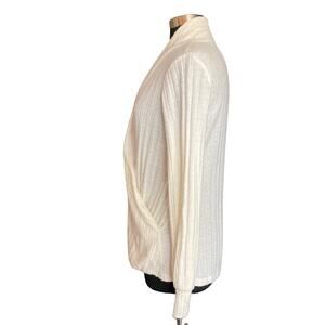 Maeve Cream Rafaela Hacci Surplice Sweater SM Faux Wrap Front Staple Minimalist