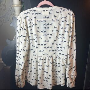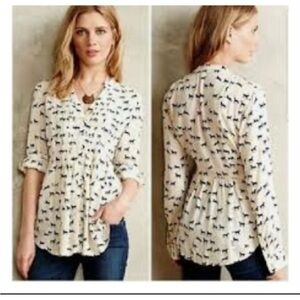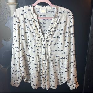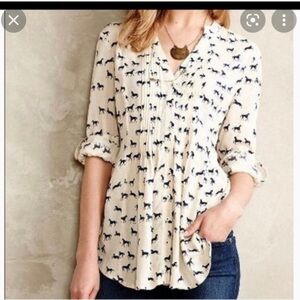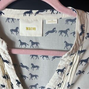 Stylish Maeve blouse with a playful print. Features a flattering fit and button details. Perfect for casual or office wear.