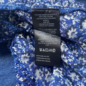 Maeve Cropped Peasant Top Blouse L Blue Floral Ruffled Smocked Cottage Romantic. Excellent pre-owned condition.