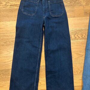 Stylish ankle-length jeans. Dark blue color. Perfect for casual wear.