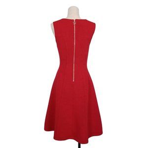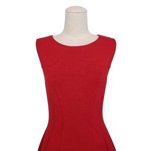 Maeve "Debutante dress" in bright red. Size small (S). This sleeveless dress is made from a scuba-like material so it keeps it's fit & flare silhouette, a round neckline, and lined skirt. Fabric: 50% rayon, 42% polyester, 8 % spandex, Lining: 95% rayon, 5% spandex. Excellent condition - no flaws.