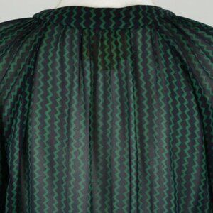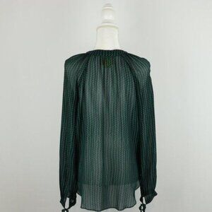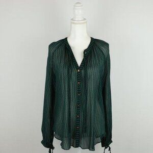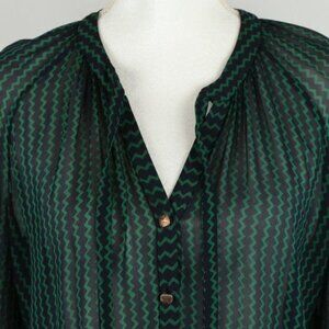 Maeve Della Women's Medium Blue Green Chevron Sheer Long Sleeve Button Up Blouse