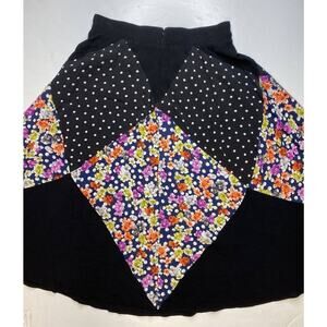 Maeve Diamond Mosaic Midi Skirt Womens Size Medium Anthropologie Patchwork Black Multicolor Floral Polka Dots Boho Peasant Gauzy Long Skirt With Sheer Lining And Back Zipper Cottagecore