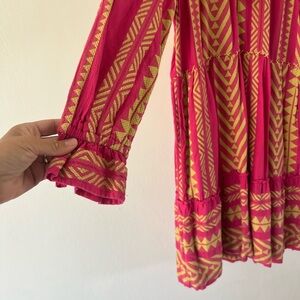 Maeve Dominique Pink & Yellow Embroidered Long Sleeve Tunic Dress