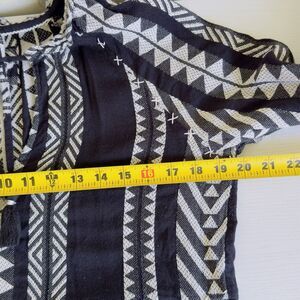MAEVE BY ANTHROPOLOGIE Dominique Tunic Dress Size XS Petites Tribal Boho Black White Geo Print Elastic Cuffs Tassels Pockets.