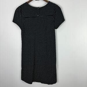 Chic and timeless, this Maeve by Anthropologie dress features a black base with a micro white dot print, short sleeves, and a flattering tailored silhouette. Made from a cotton-blend shell with full rayon lining, this mini dress is perfect for work, brunch, or a stroll through the city. There is a small flaw at the shoulder seam (see photo), but it does not affect wear.