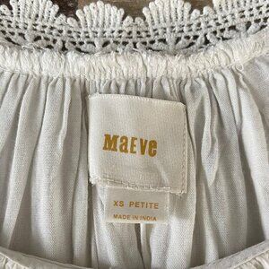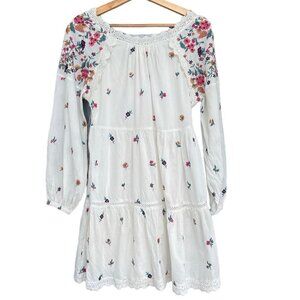 Anthropologie Maeve Dress Women XSP White Baby Doll Embroidered Floral Cottagecore Boho Fairy