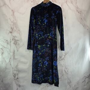 Maeve Dress Womens XS Blue Floral Velvet Midi Keyhole Constance Slit