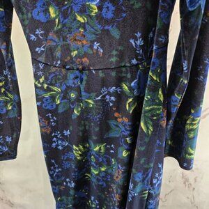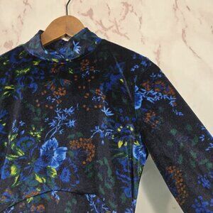 Maeve Dress Womens XS Blue Floral Velvet Midi Keyhole Constance Slit