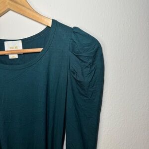 Maeve Dress Women's XXSP Teal Green Mini Puff Sleeve Belted Casual