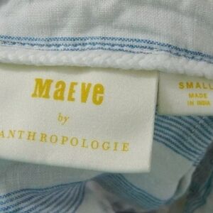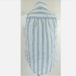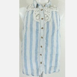 Item: Women's Edinboro Blue White Striped Linen Button Front Lace Inset Top