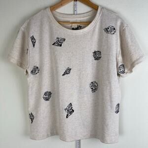 Maeve Embroidered Shell Top Size S Beige Short Sleeve Sweatshirt Anthropologie