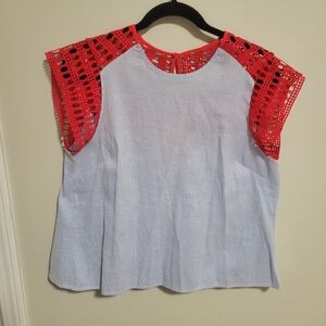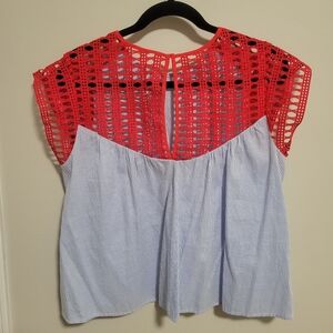 Maeve top blouse, Stripped lace crochet sleeves size small pre-owned in very good condition.