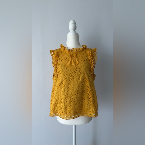 Maeve by Anthropology yellow orange blouse with eyelet design & ruffle sleeves. Bust 42”, shoulder to bottom 22”. Don’t be shy, make an offer!😄